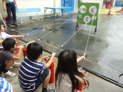地震がおきたらどのようにすればいいのかDVDをみたり、消火器の使い方を実際に体験したりしました。
