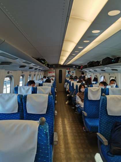 あっという間に新幹線は広島県に入りました。車中では上がっていく気分をほどほどに押さえつつ、おとなしく過ごしています。姫路城、福山城など、車窓から見える景色に見入っている子もいれば、車内トイレを珍しそうに眺めながら使っている子もいます。