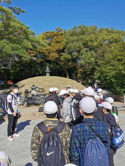 昼食後、碑巡りをしながら原爆にまつわるいろんな歴史を学びました。また、本川小学校にも訪れることができました。