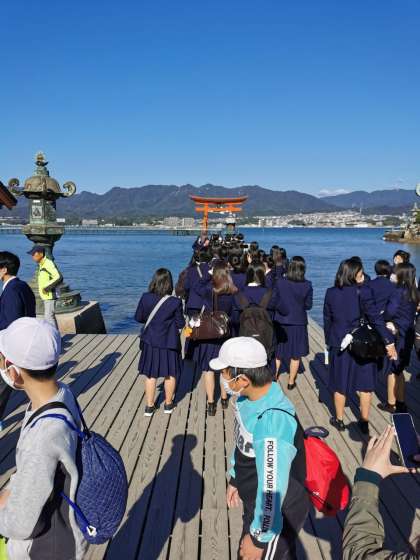 宮島はなかなかの人手です。鳥居の囲いが取れていました。