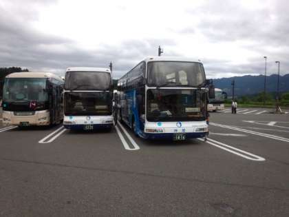 あと1時間で宿舎に到着します。バスの中では、元気な歌声が響いています!
