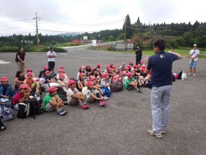 早速、開所式を行いました。お世話になる中尾さんにご挨拶して、いよいよ林間学習スタートです!