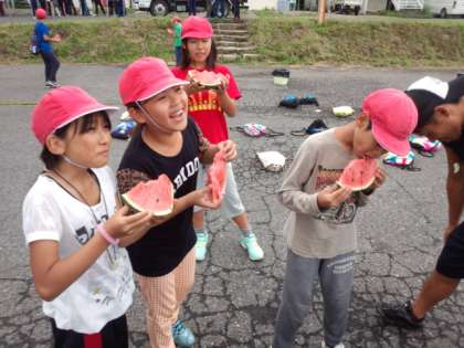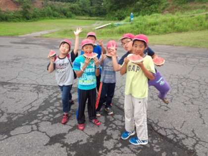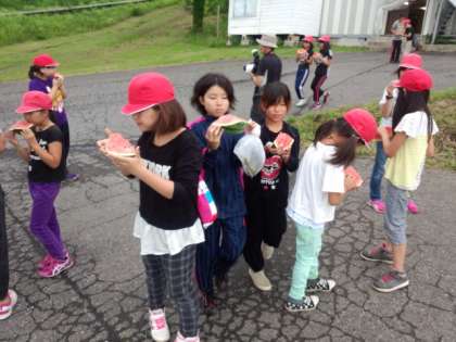 高原遊びから帰ると、スイカのおやつが用意されていました。