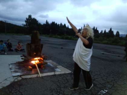 火の神様をみんなで呼ぶと、なんと、火の女神?が登場しました。そして、点火!!