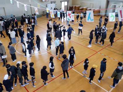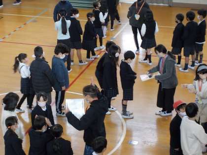 昨日の卒業お祝い集会の様子です。各学年から6年生へ歌やメダル、合唱、合奏のプレゼントを贈りました。また、たてわり班ラストゲームでは、班のメンバーが順番で6年生とじゃんけんをし、勝った方が質問しました。6年生は下の子に目線を合わせて低い姿勢で話をする姿が印象的でした。