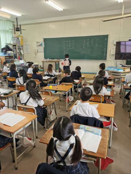 1年生ではスピーチの発表をしていました。日常生活の何気ないことかもしれませんが、前に立って発表する経験がこれからのいろんな活動につながっていきます。