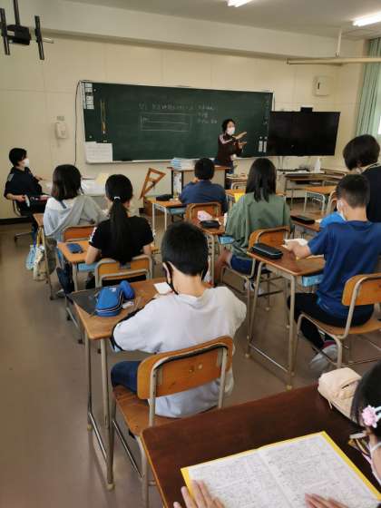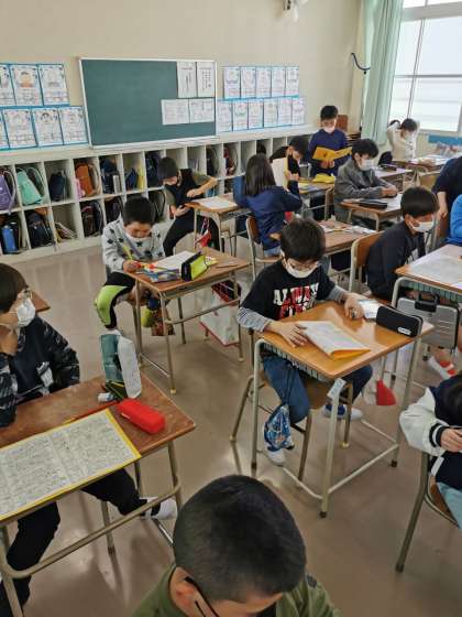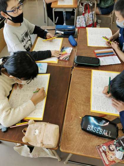 6年生家庭科。献立表をもとに栄養素について調べています。