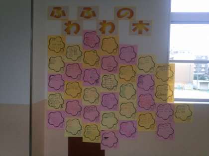 昨日、児童集会でやさしい言葉「ふわふわ言葉」を集めました。