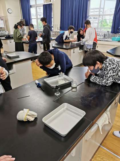 6年生では理科でものの燃え方のちがいを確かめる実験をしています。