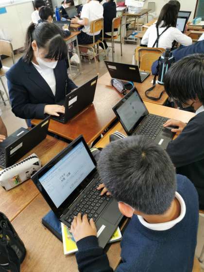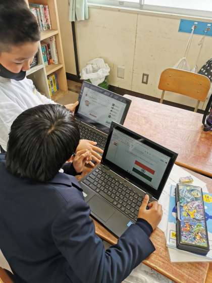 5年は学習者用端末でいろんな国のことを調べ、スライドにしています。