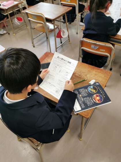 今日は尿検査一式を配布しています。使い方の各学級で説明しています。