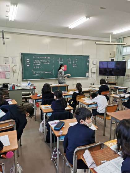 4年生は割り算の筆算を学習しています。繰り返し商をたてるというところがPOINTになります。たてる、かける、ひく、おろすの手順に慣れているところです。