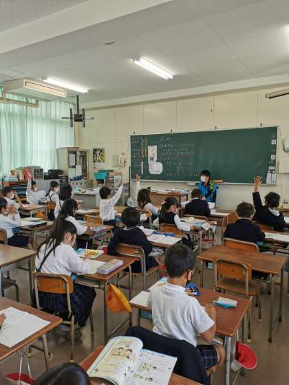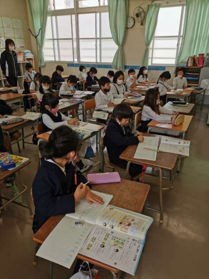 2年生では足し算の学習をしています。足す数をさくらんぼにして分けるという考え方で練習しています。