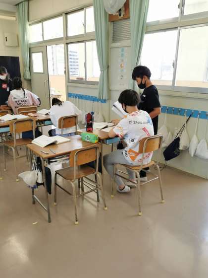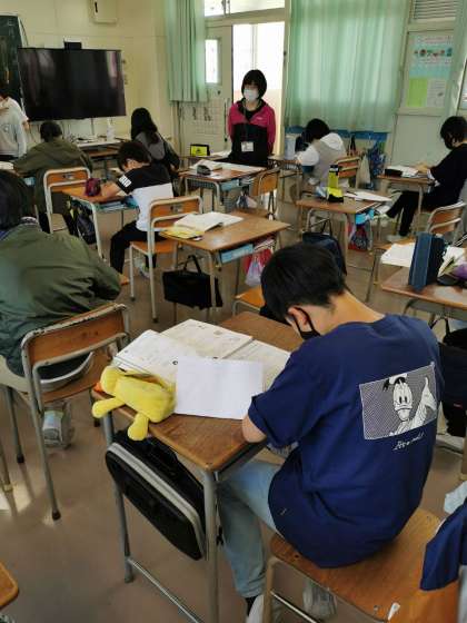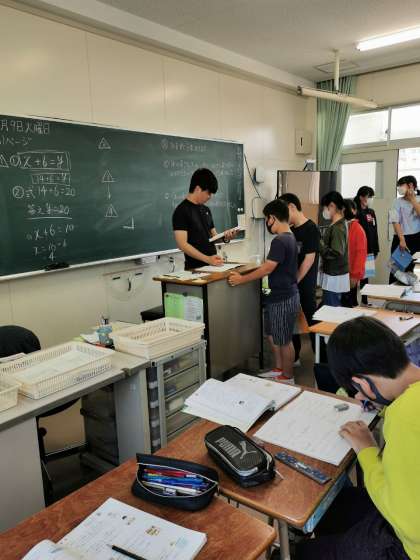 6年生算数ではXやYを使った式の学習をしています。プリントで練習したり教え合いをしたりしています。