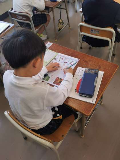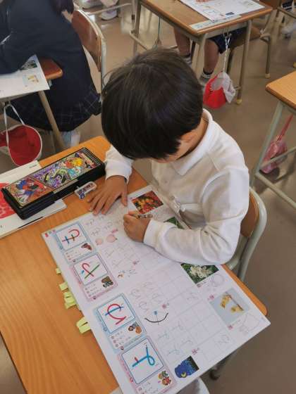 1年生は今日は「め」「も」の学習をしました。「も」の書き順は大人でも間違えることがあります。