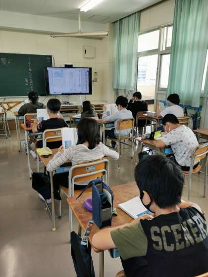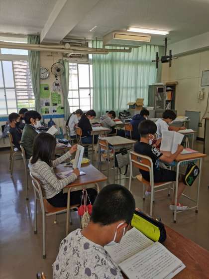 6年生国語で説明文の学習をしています。長文をしっかり読み取るために音読をしています。