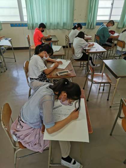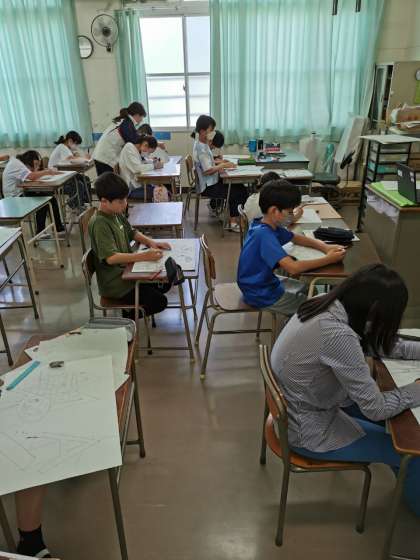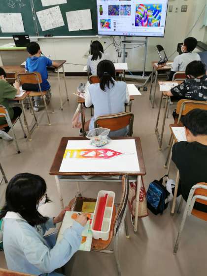6年生図工では名前の街の制作が進んでいます。