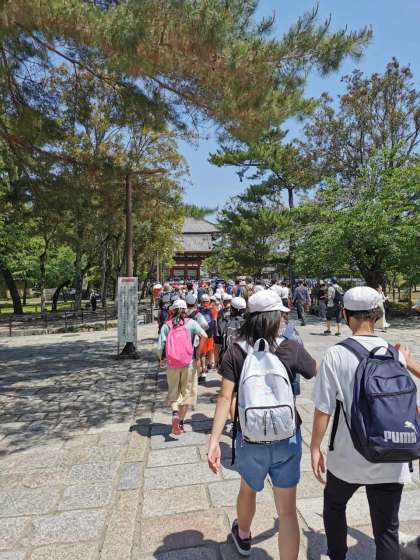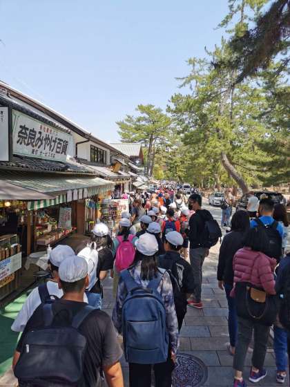 近鉄奈良駅から東大寺まで向かいましたが他校の遠足に加えて海外から多くの人が訪れていました。