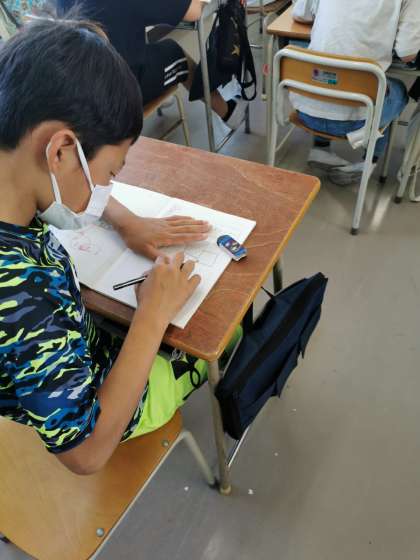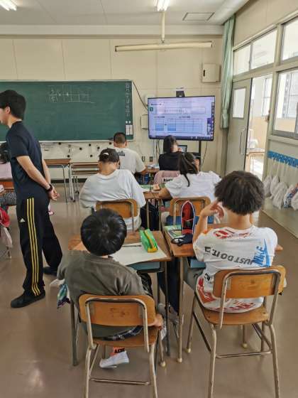 6年生では分数の計算の学習をしています。どのように計算すればいいのか、考えて方を確認しています。
