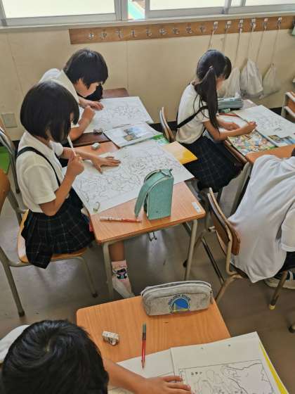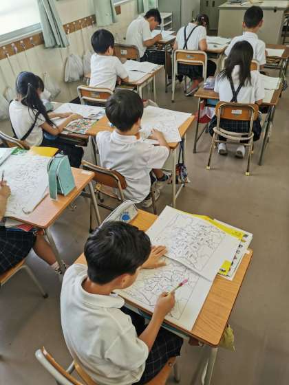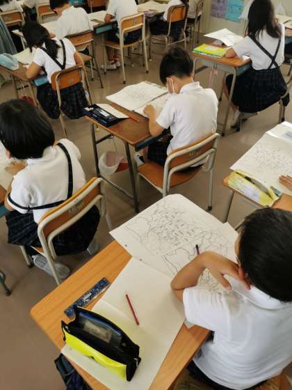 3年生社会では大阪市の区について学習しています。24区の名前や場所を地図で確認して覚えています。