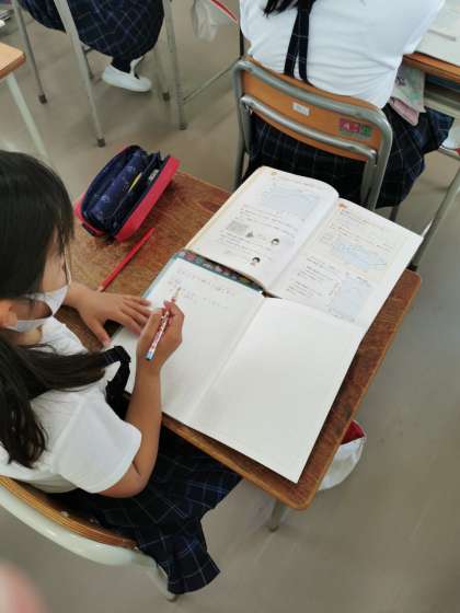4年生算数ではグラフの読み取りをしています。変化に気づき、どのように変化しているか、グラフの読み方を学習しています。