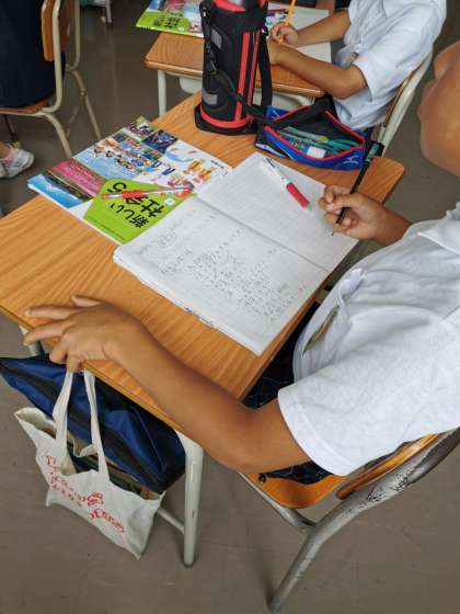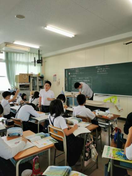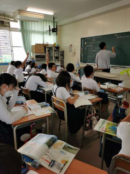 5年生社会では、「高い土地のくらし」の学習をしています。空中写真やグラフなどをもとに、自分たちが考えた予想と実際を比べています。