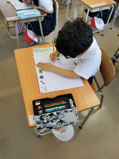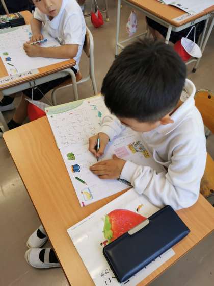 ひらがなの練習をがんばっています。とても静かに学習していました。