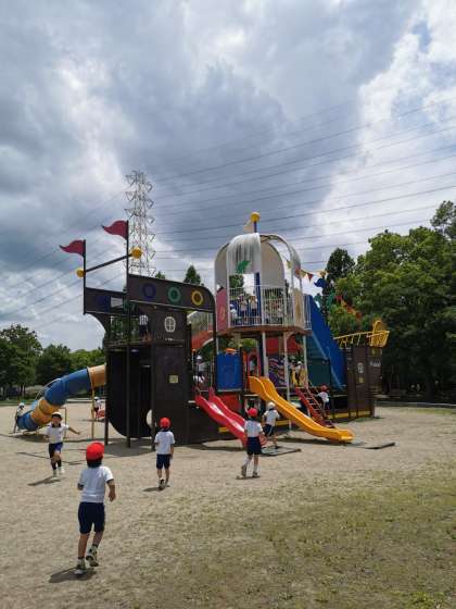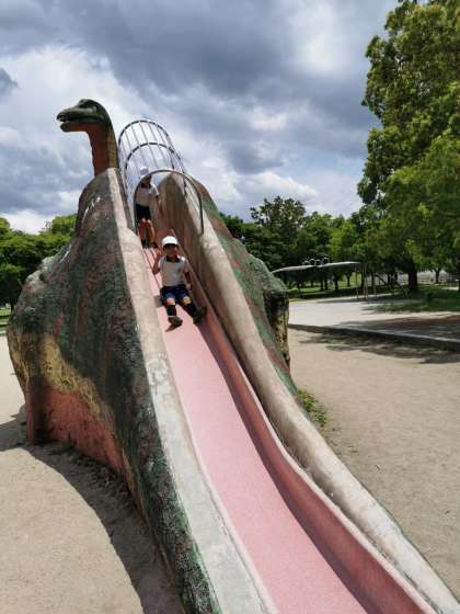 昼食後は大きな恐竜の遊具などで遊びました。