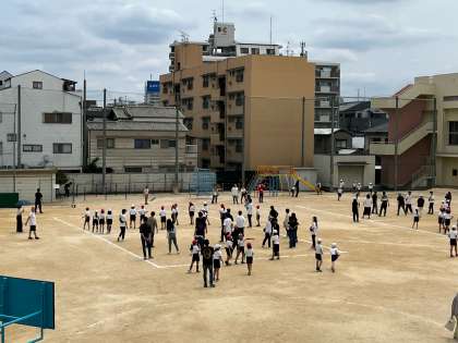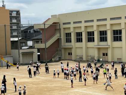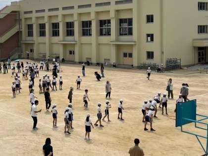 3時間目の親子ドッジボール4年・6年の様子です。