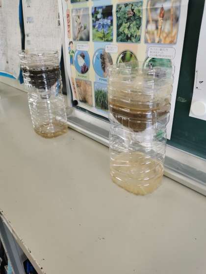 水の染みこみ方と土との関係を考えています。普段なにげに目にしていることではありますが、よく目で見ると発見があります。