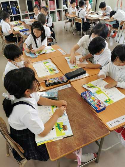 「っ」のつく言葉を、手拍子に合わせて読んでいます。