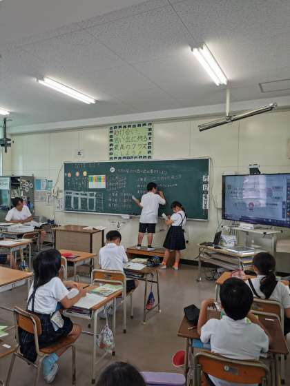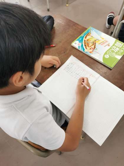 大きな数字の書き表し方、漢字を使っての表記の仕方を学習しています。読めてもいざ書くとなると難しいです。