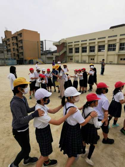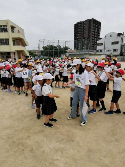 今朝の児童集会はじゃんけん列車をしました。列がこんがらがっているようでしたがなかなかの盛りあがりでした。