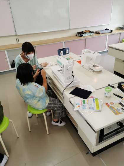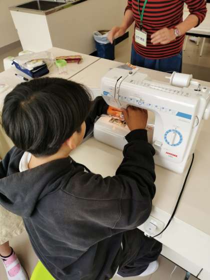 ミシンを使って縫ったり、アイロンの熱で布を貼り付けてデザインをつくったりしています。