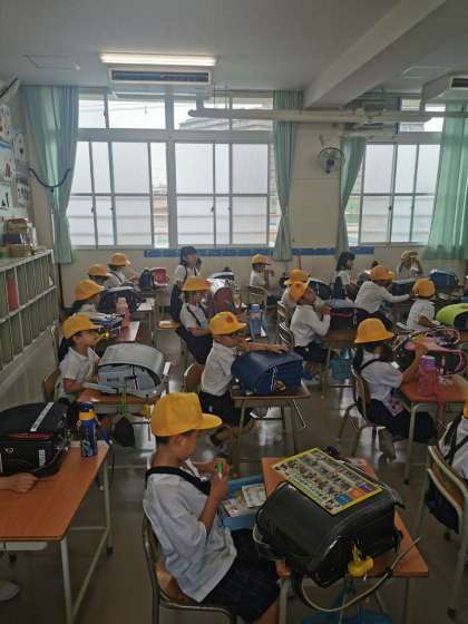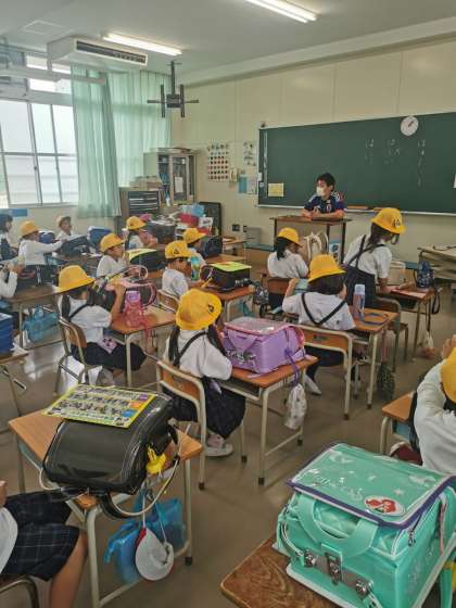 入学して2ヶ月しかたっていないのに、本当にスムーズです。画像は、学習者用端末で心の天気を入力し、荷物を用意したあとの様子です。