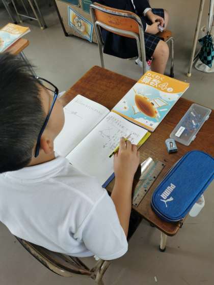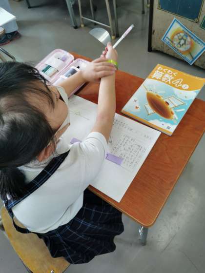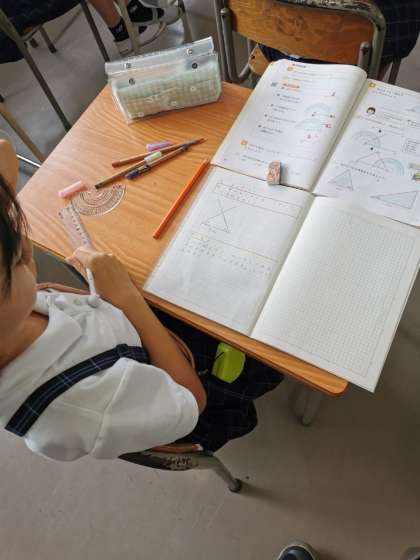 作図の学習です。辺の線をひき、角度をはかり、辺の線をひき、の繰り返しです。