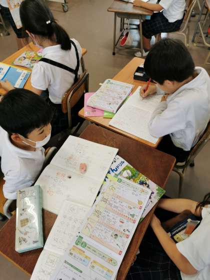 ちょっとした時間にドリルや漢字学習のやり直しをしています。まじめにがんばっています。
