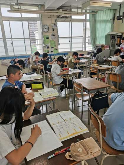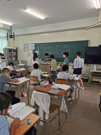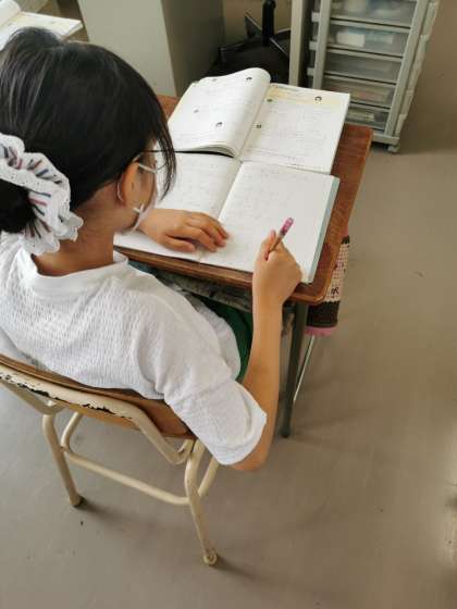 分数の計算をしています。ドリル学習でいろんな問題をどんどん解いています。