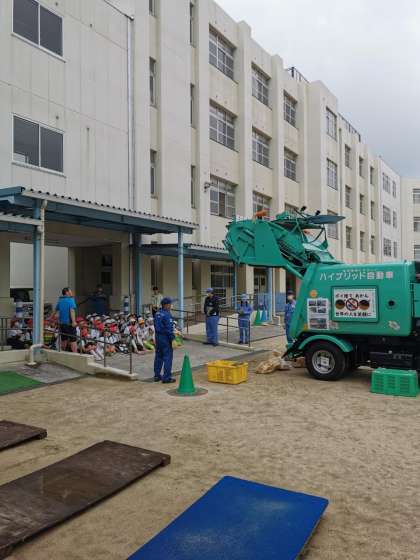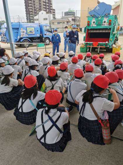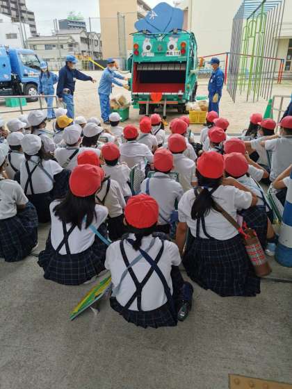 大阪市環境局の方が来られ、ごみの行方やパッカー車のこと、収集する際の工夫や苦労などについてお話しをうかがいました。