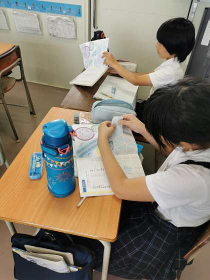 三角形の内角について調べているところです。三角形を並べる作業を通しての学習です。