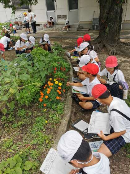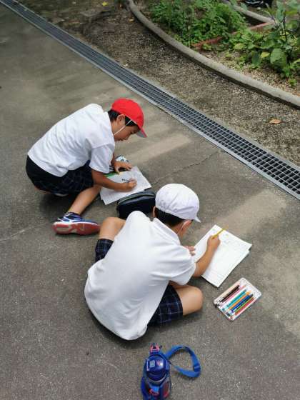 花の観察をしています。見れば見るほど難しく感じる子もいるようです。