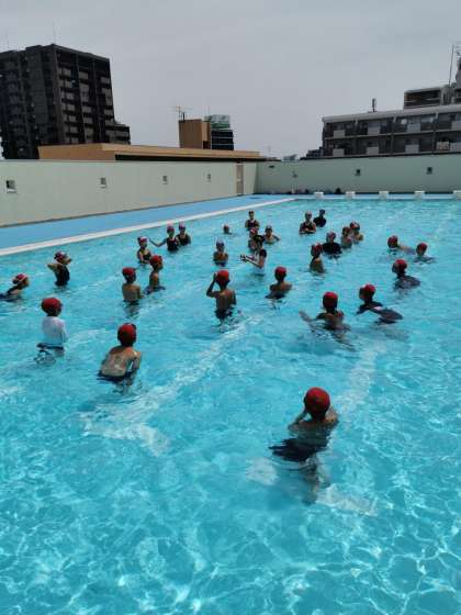 みんなで楽しく演技をしたあと、橘先生の泳ぎを水上、水中から見ました。驚きの声があがっていました。