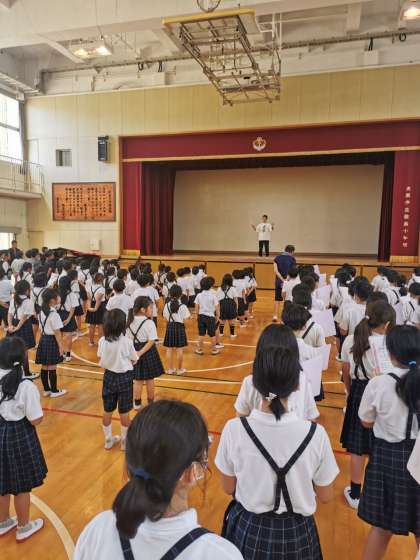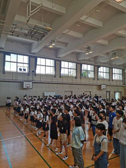 終業式のあとは音楽集会を行いました。「ありがとうの花」を歌いました。講堂いっぱいに歌声が響きました。
