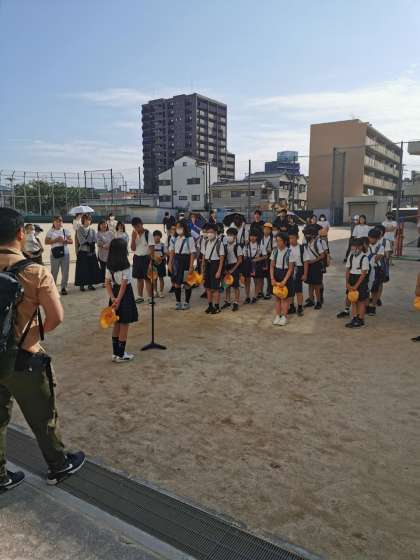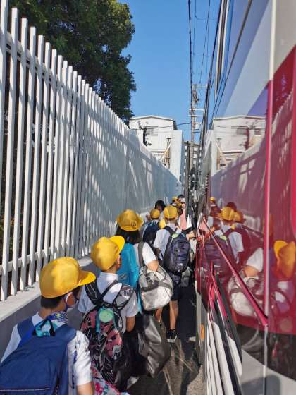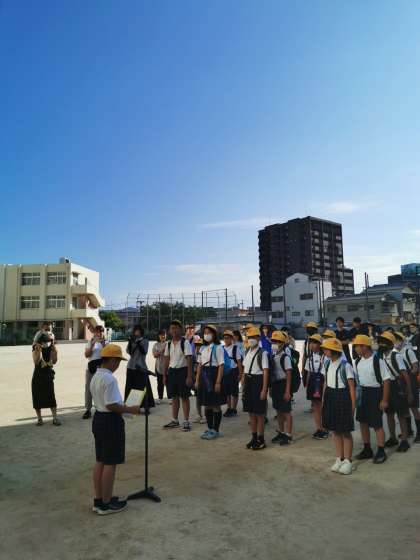 今日から林間学習です。いいお天気のもと定刻どおり歌島小学校を出発しました。お休みのところ多くの方にお見送りしていただきました。ありがとうございました。