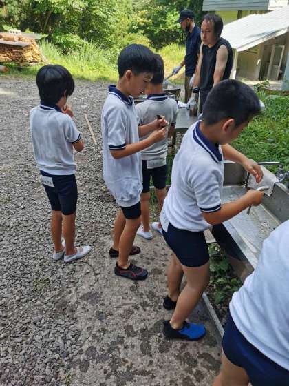 捕まえたニジマスをその後いただきました。食べ物をいただくことについて考える機会にもなります。