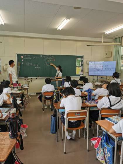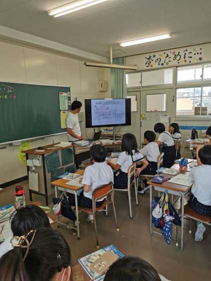 約数の学習をしています。考え方をグループで共有したあと、全体でも確認しています。