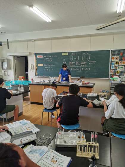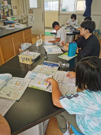 塩酸を使っての学習です。塩酸による変化を確かめていました。うまく実験できたようです。