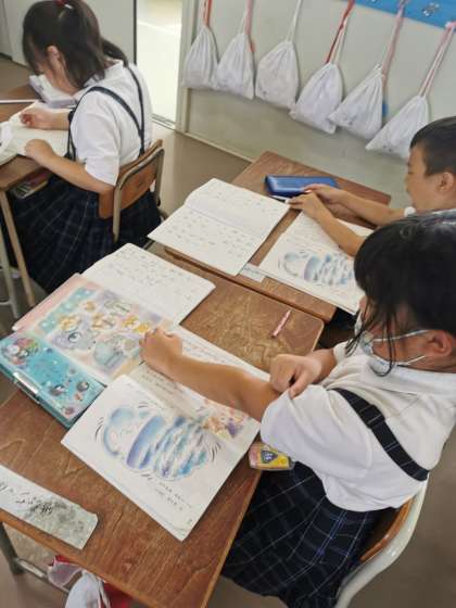 この時間では、登場人物の気持ちを文章からみつけようとしています。