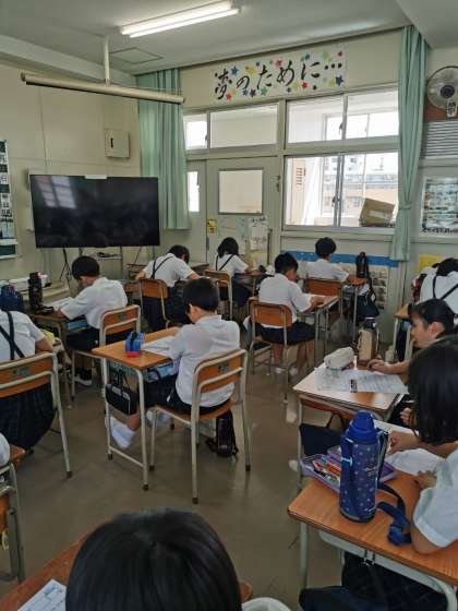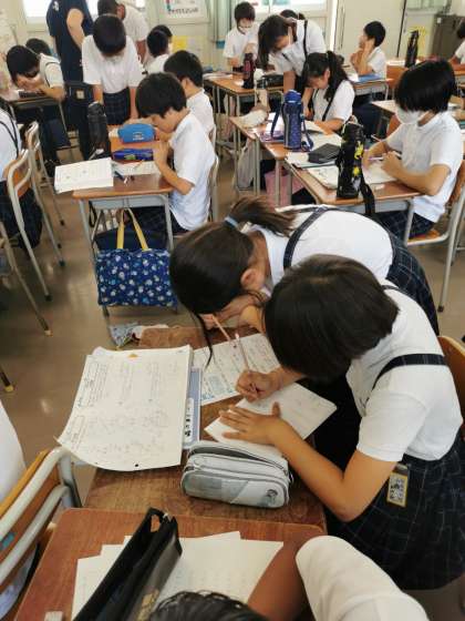 公約数、公倍数のテストをしました。少しだけテスト前の復習をして臨んでいます。