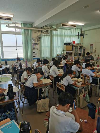 注文の多い料理店の学習が始まりました。今日は朗読を聞きながら「出会いの感想文」を書いています。